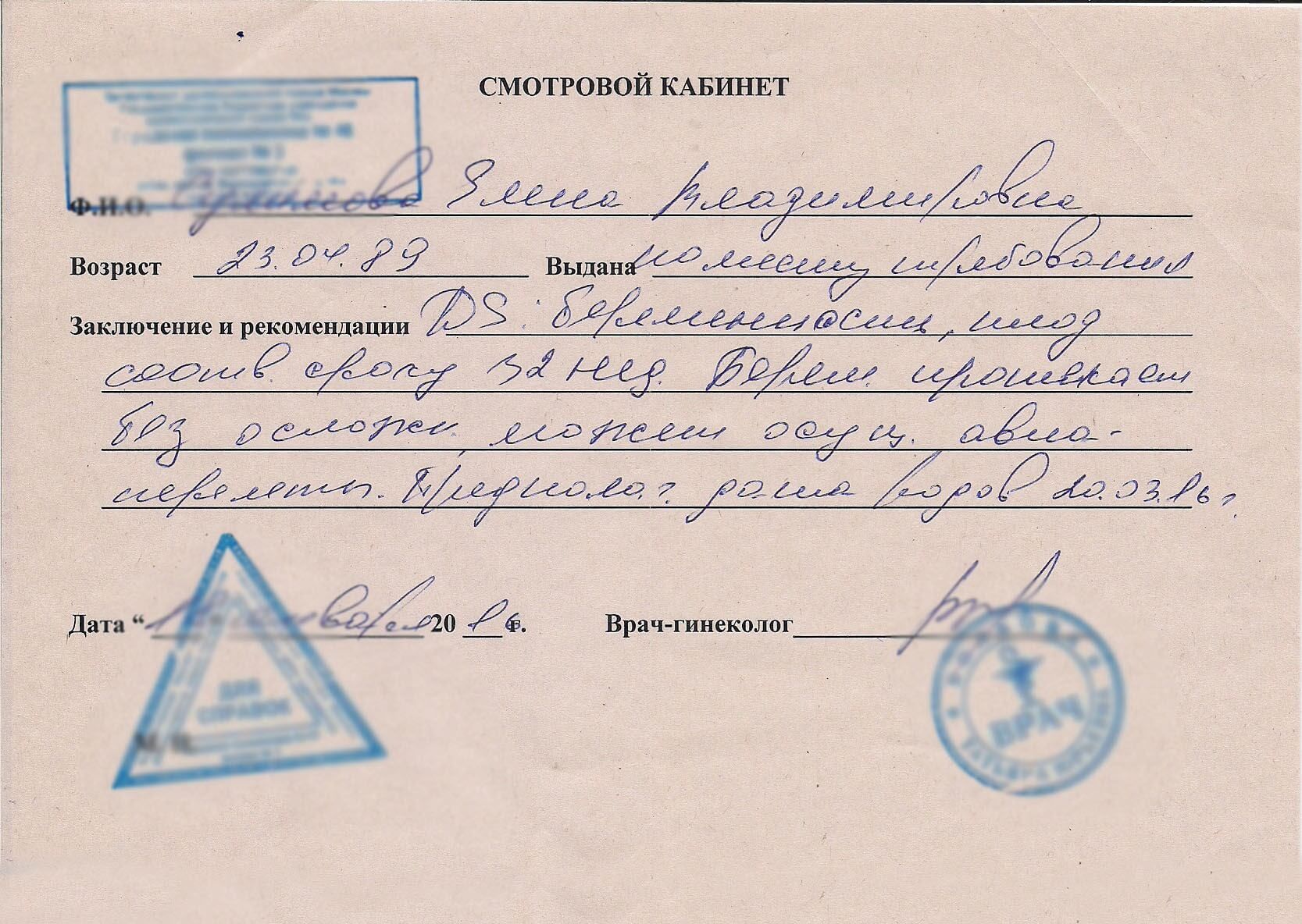 Нередко девушки сталкиваются с ситуацией, когда им необходимо предоставить справку из смотрового кабинета с печатью, подтверждающую беременность. В таком свидетельстве указывается информация касаемо медицинского учреждения, которое выдаёт заключение, дату выдачи и штамп с подписью врача. Стоит отметить, что есть возможность получения справки о беременности для ЗАГСа, учебного заведения, рабочего места и т.д., в начале срока вынашивания, т.е. до проведения УЗИ-исследования.
